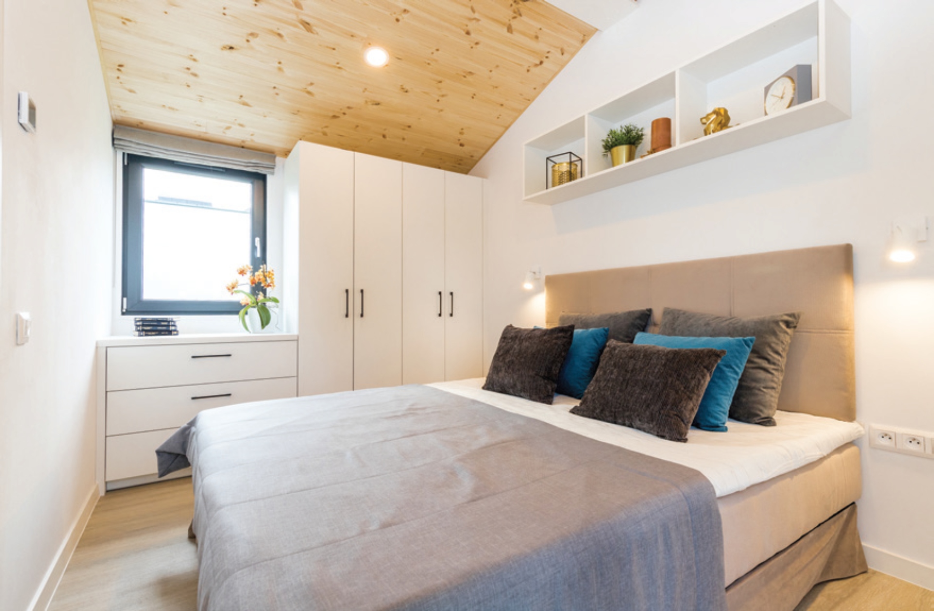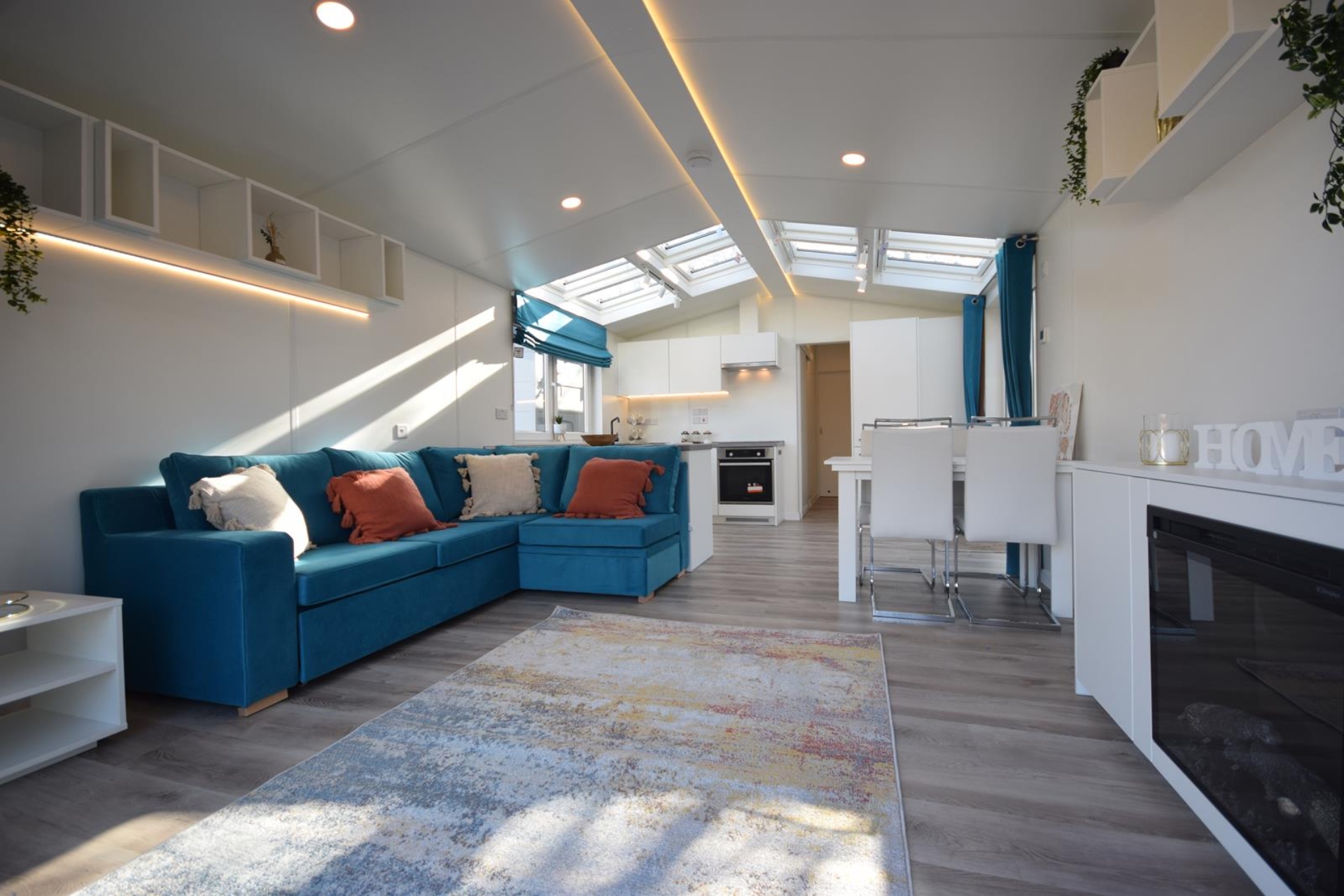 This solar ready ECO lodge, built especially for Sunrise, has a modern and sleek design at a very comfortable 42′ X 14.5′. Stunning and well-positioned velux windows offer a new perspective on light and space in this unit which comes with underfloor heating as standard. Lark offer endless options, including Claystone, Olive and Siberian Larch colour choices for Kerrafront wood facades. The only way to navigate the features and designs which can be tailored to the customer’s requirements is by speaking to co-director, Lucas Smith as the perfect conduit to helping you co-create your dream home. Lucas’s enthusiasm, knowledge, expertise and experience in working together with Lark is invaluable.